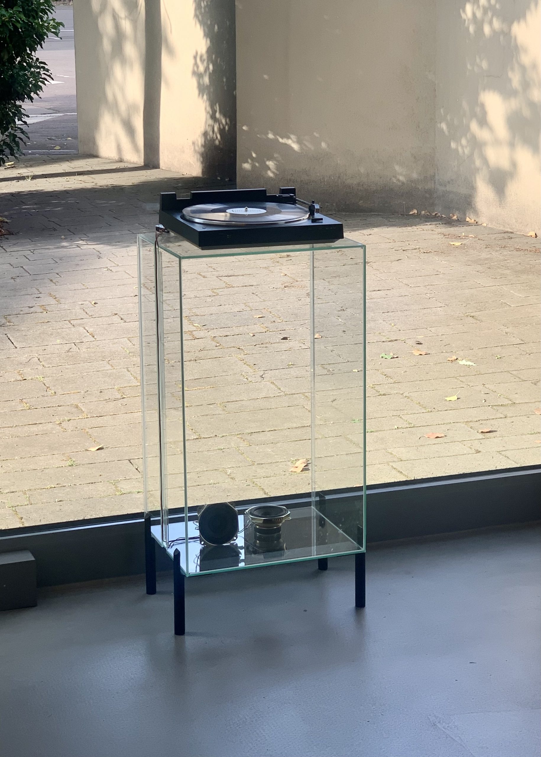 sound sculpture: terrarium, construction plans on edible paper, LP, automated music: 4:44 min, grand piano: Nadine Klusacsek, 2022-23