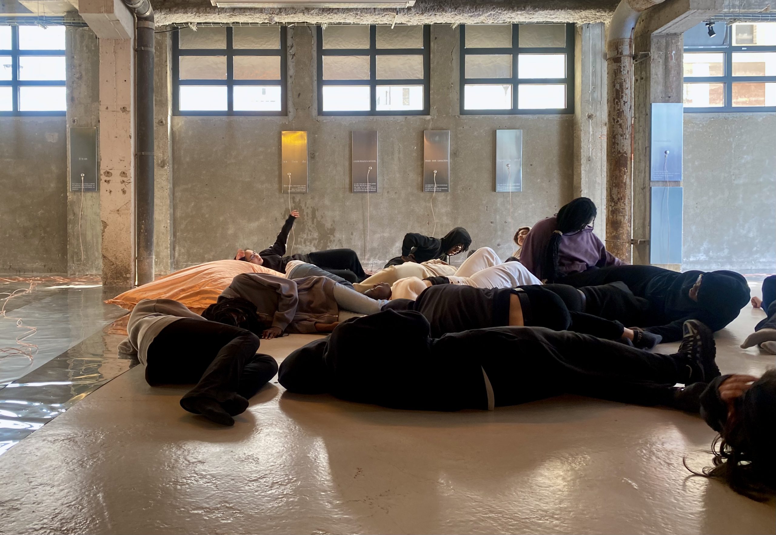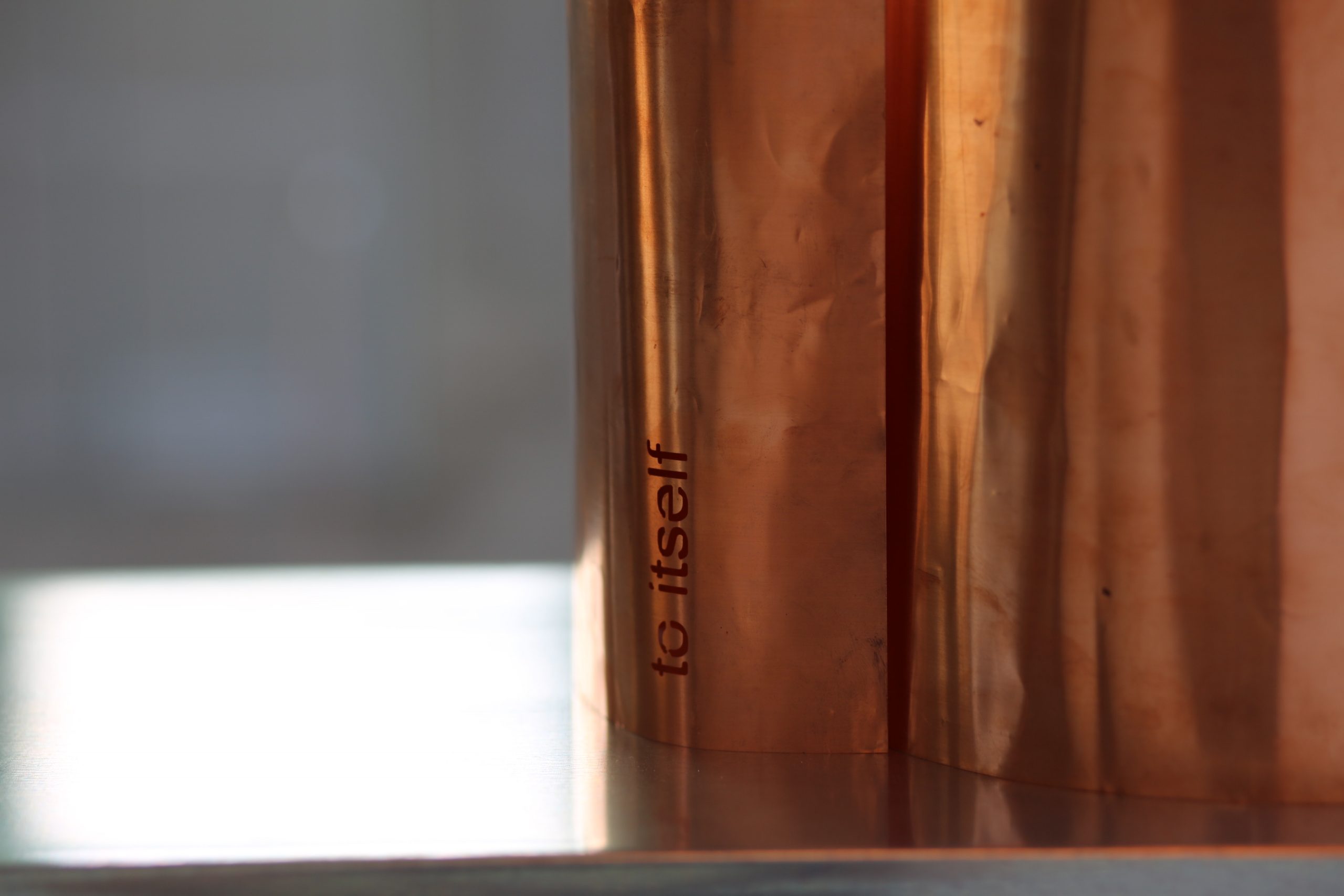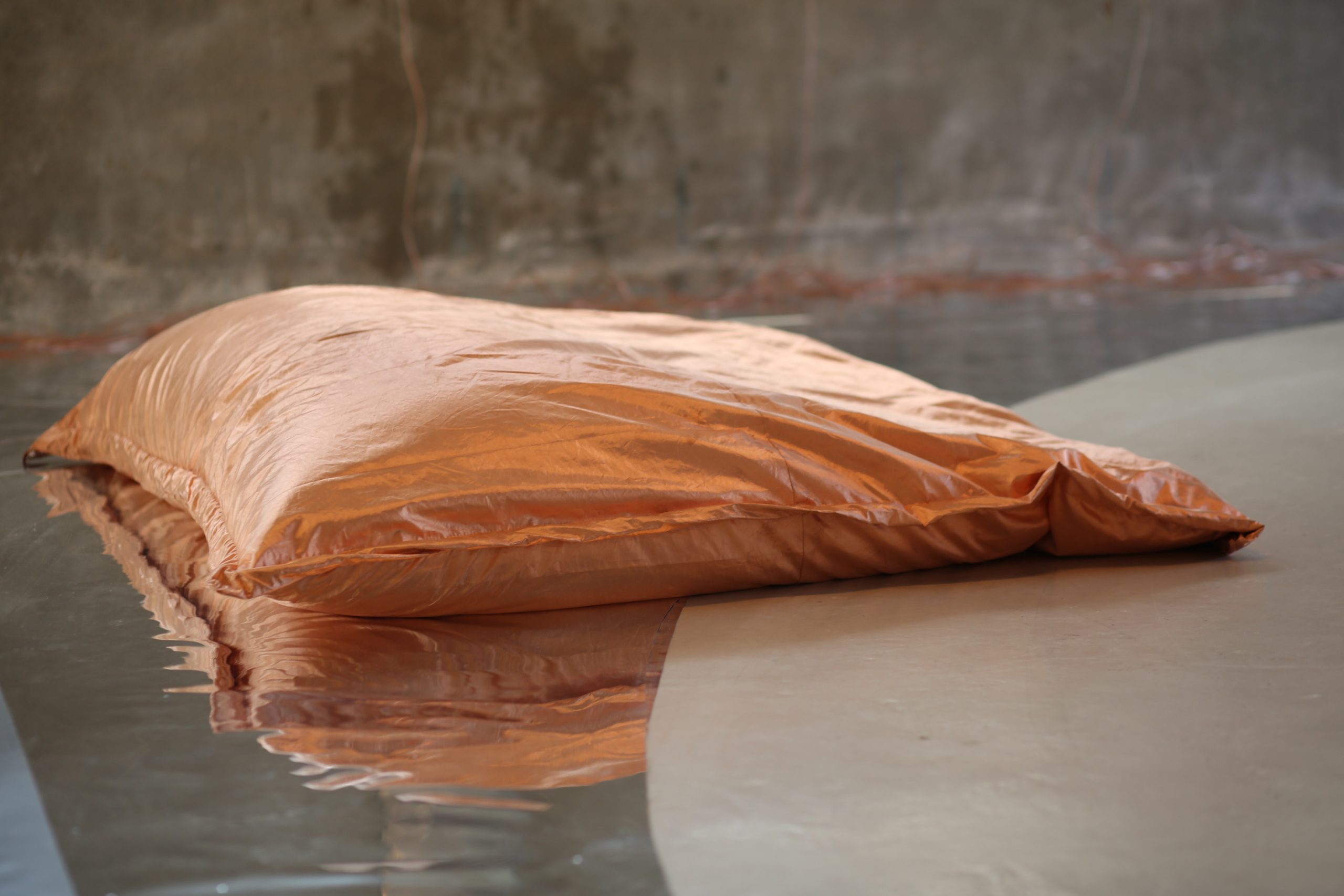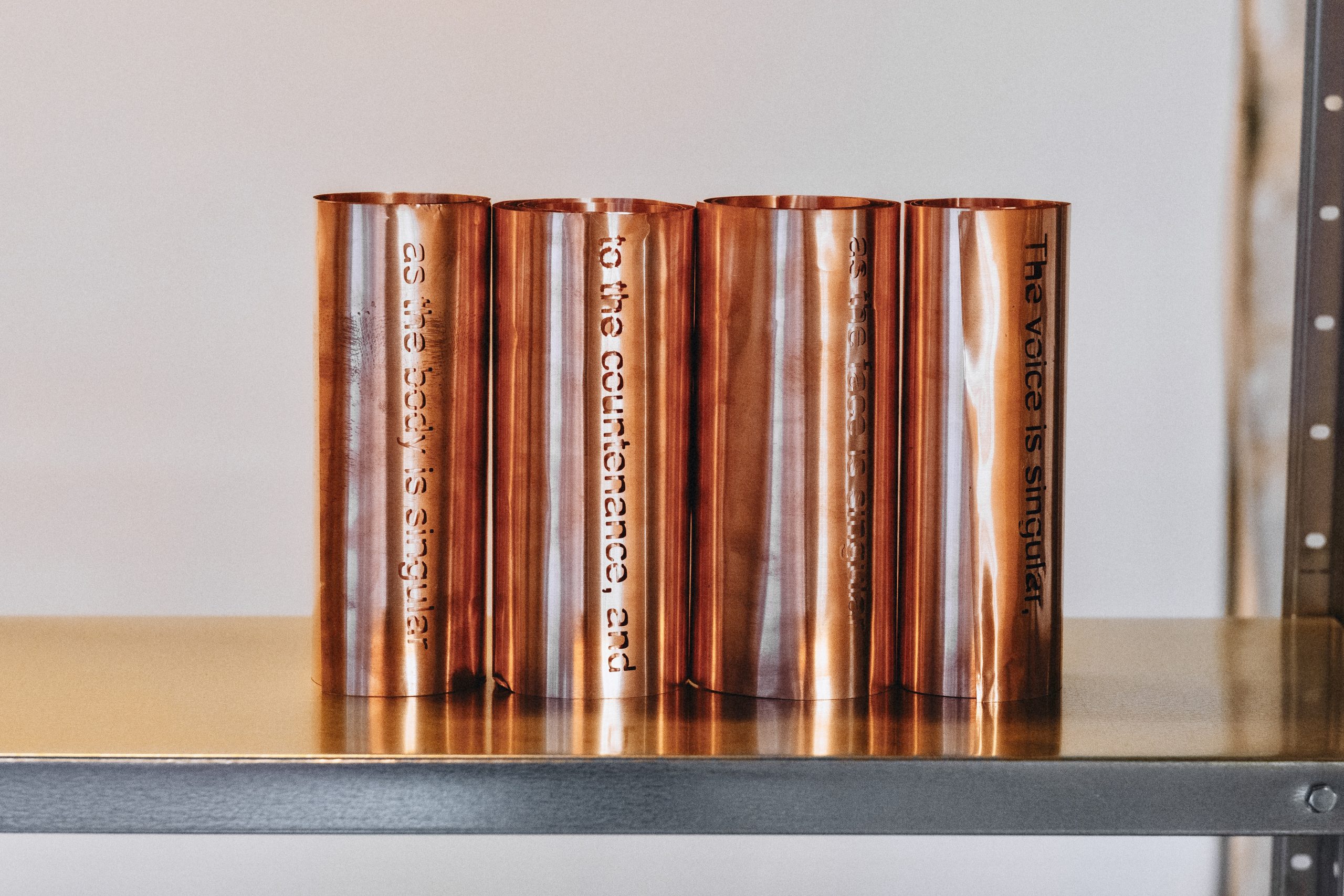 Margarita Wenzel explores how synthetic voices shape our perception of intimacy, authenticity, and collectivity. In Virtual Voiɔɘƨ, she weaves together vocal technologies and affective narratives to question the boundaries between body and machine, presence and absence. Drawing on vocal exercises transformed into AI instructions, the artist clones, fragments, and distorts her own voice to compose a hybrid, glitched, and unsettling soundscape. Installed in situ, the work unfolds through vibrating speakers, creating an immersive listening experience enhanced by orange lighting and a silver floor. Interlacing text and voice, the piece raises a fundamental question: who owns a voice once it becomes digital data? Copper, present in the installation, functions both as an ancient mirror and a technological material, linking these floating voices to the history of reflection, language, and extraction. Virtual Voiɔɘƨ probes our relationship to the voice in the age of artificial intelligence — suspended between the erasure of the body and the persistence of the sensorial.